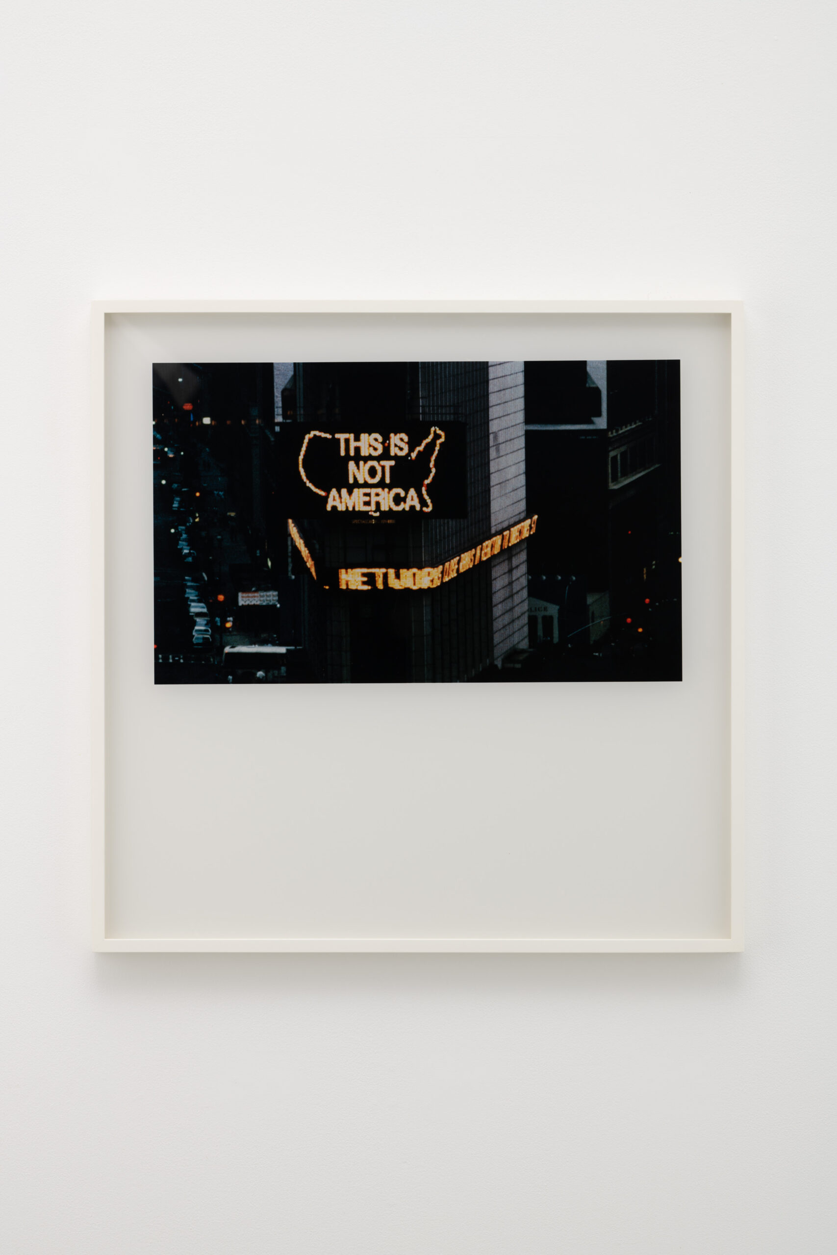 哲学者エミール・シオラン(1911-1995)によるエッセイ集「A Short History of Decay」(崩壊についての短い歴史、1949 年)の詩の一節を引用した作品です。 悲観的といわれるそのエッセイ集は、ルーマニア人であるシオランが第二次世界大戦後パリに腰を落ち着け、はじめてフランス語で書いた書籍です。悲観主義でニヒリスティックといわれるシオランは、その反面、詭弁的な理想主義や道徳概念に惑わされず、人間の存在の核に迫った人物といわれています。 また、作品は鮮やかな赤・オレンジ・黄色というしばしば警告の色である色彩の光を放っています。大文字の言葉と相まって注意を引き、人々の関心を呼び 起こします。時代や社会、個人の関心によっても捉え方が異なるであろうこの言葉から、鑑賞者自らが何を読み取るかの重要性を示唆しているのです。